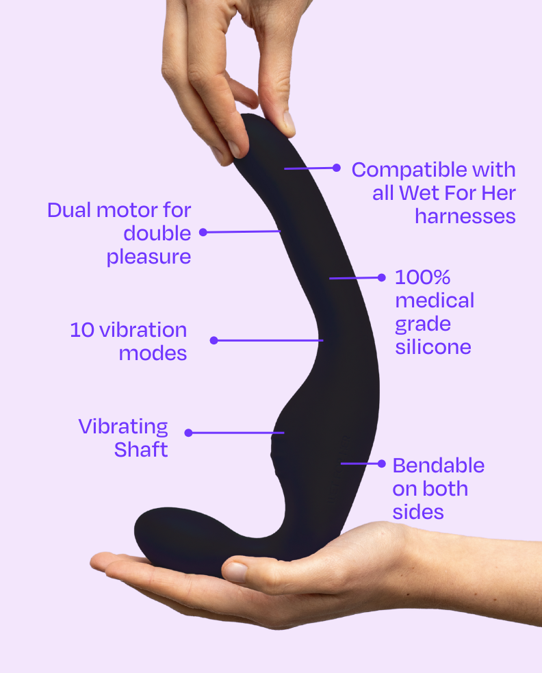 Der ikonische Double Dildo wurde aufgerüstet! Wir haben 2 Motoren für doppeltes Vergnügen hinzugefügt – sowohl für die tragende Person als auch für die empfangende Person. Erleben Sie transorgasmisches Liebesspiel. Er funktioniert mit der Wet For Her Fernbedienung. Diese Fernbedienung ist nicht im Lieferumfang enthalten, kann separat gekauft oder als Teil des Sets zum ermäßigten Preis ausgewählt werden.