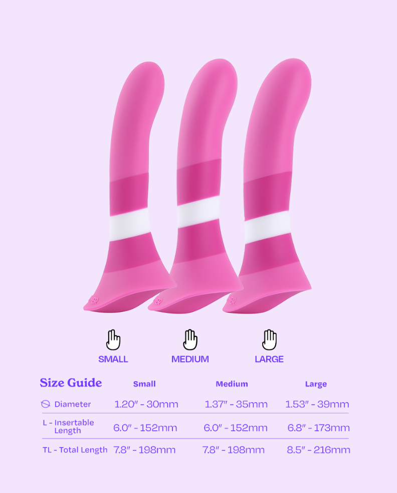 Su eje flexible y su construcción de silicona brindan un deslizamiento suave que se siente en todos los sentidos, mientras que la exclusiva Base con relieve estimula el clítoris de la persona que lo lleva puesto, convirtiendo cada movimiento en una ola de delirio compartida.
