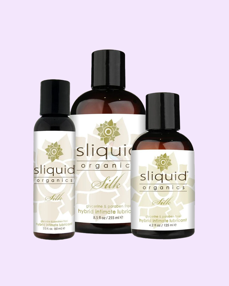Infusionados con ésteres emolientes, este lubricante natural se asemeja a una loción calmante para la piel. Esta fórmula sin fragancias es completamente segura para su uso en los tejidos corporales más delicados y ha sido diseñada para personas sensibles. La mezcla de silicona añade longevidad a la mezcla a base de aloe, por lo que es ideal para sesiones íntimas de larga duración, así como para masajes sensuales. El lubricante “Sliquid Organics Silk” se limpia con la facilidad de un lubricante a base de agua y tiene la longevidad añadida de un lubricante a base de silicona.
