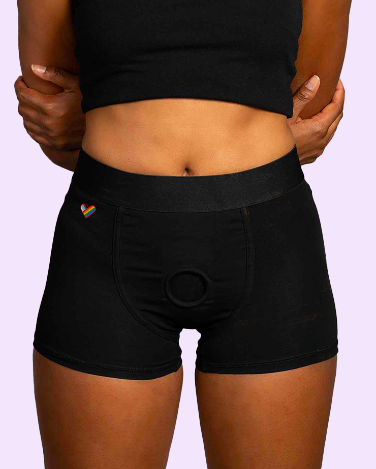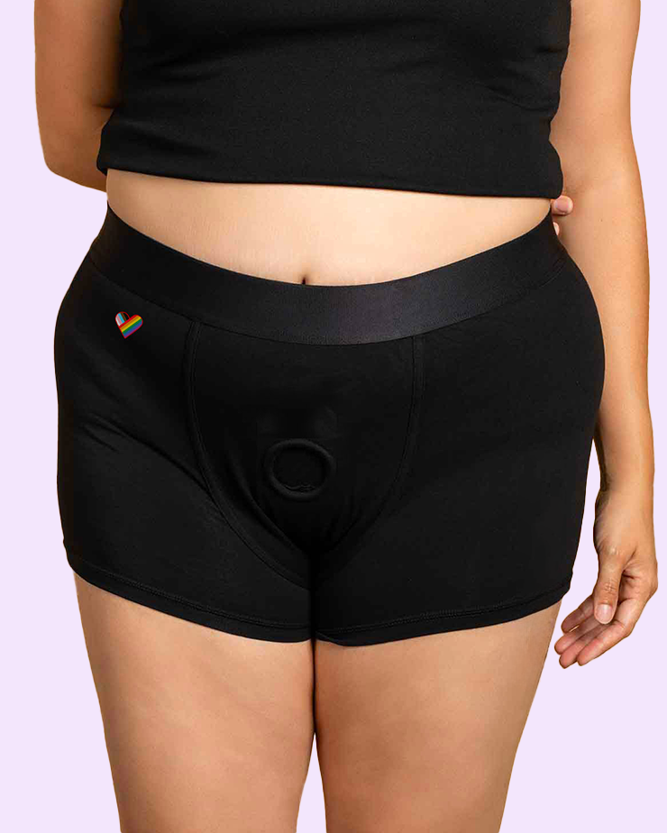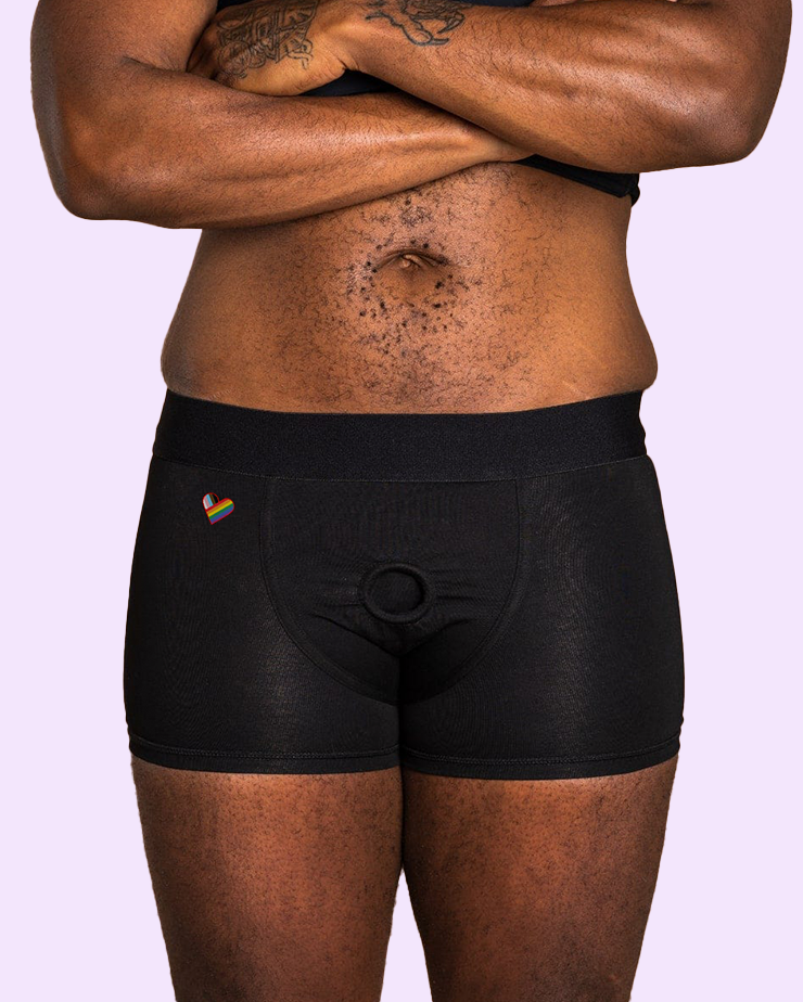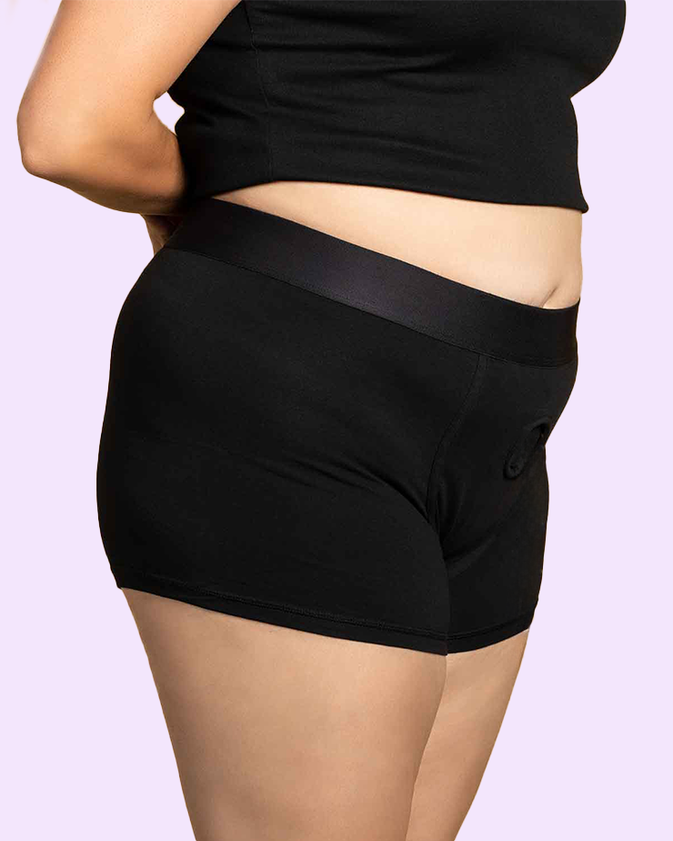 Designed for those who take charge in the bedroom, this underwear-style harness is destined to become your go-to for confident, no-nonsense play. With a strategically placed O-ring, these boxers lock your favorite toy or packer firmly in place, keeping it secure no matter how wild things get. Made from a soft, stretchy cotton blend, they mean no more fumbling with annoying straps—just pure, uninterrupted pleasure with every grind.