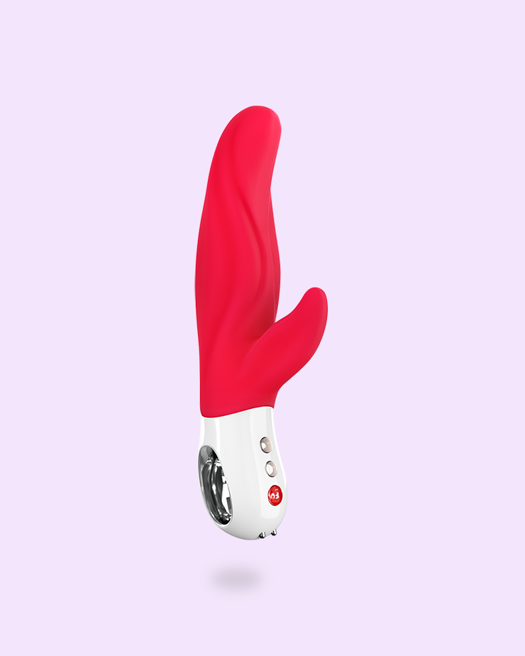 Are you looking for elegance, power, quiet and versatility from your next sex toy? Allow us to introduce Lady Bi, the “girl” of your dreams. Fun Factory’s new twice as nice vibrator is curvy and attractive, its unique shape designed to hug both the g-spot & clitoris while offering girthy fullness and extra g-spot stimulation––or prostate pleasure, since it’s an anal-safe design. Longer than usual, flexible, 100% silicone shaft offers more options for those who love thrusting and in/out movement; customize the degree of pressure and sensation you like with the flexible-but-not-too-flexible contoured external stimulator, which offers constant clitoral contact. Customize your pleasure: Deep rumbling vibration is provided by two motors, one located on shaft and the other on the external stimulator, with three intensity levels and three vibration rhythms to choose from. Featuring an ergonomic loop handle at the base for ease of use and access to control buttons. Waterproof (it’s submersible! Take it into bath or shower) and easy to clean; just wash with mild soap and water. Rechargeable with click n’ charge technology & via USB plug. Designed and manufactured in Germany (green manufacturing to EU standards).