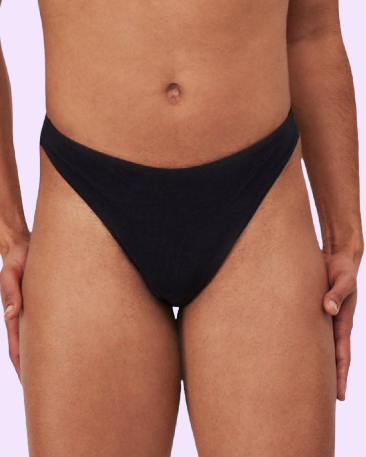 This semi-sheer gaffed thong was created for trans feminine people, or anyone who is looking for a compression undie. It can be worn with or without a tuck. It smooths out the front, making this an ideal piece for a no-line silhouette under workout gear or tight clothing. Powermesh has the firmest hold of all my fabrics while being comfortable and breathable enough for daily wear.