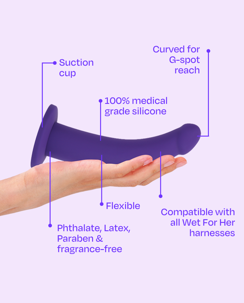 Out is compatible with all Wet For Her harnesses (StartHer, Jock, Brief, and Boxer), making it perfect for partner play that lets you indulge in hands-elsewhere pleasure. Its perfectly curved shaft takes things to the next level, targeting your partner’s G-spot and delivering spot-on satisfaction with ease. And when solo time calls? The flared suction base sticks securely to any smooth surface, turning any setting into your personal playground. A wonderful palace to start your strap on explorations.