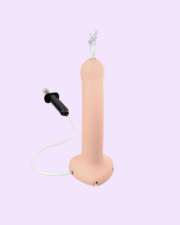At first glance, this sex toy is just like any dildo that can be used with a harness. But this is a squirting insemination dildo for queer couples. Built with an internal squirting pump, connected to a tube, this strap-on is designed to release fluid just at the right time.
