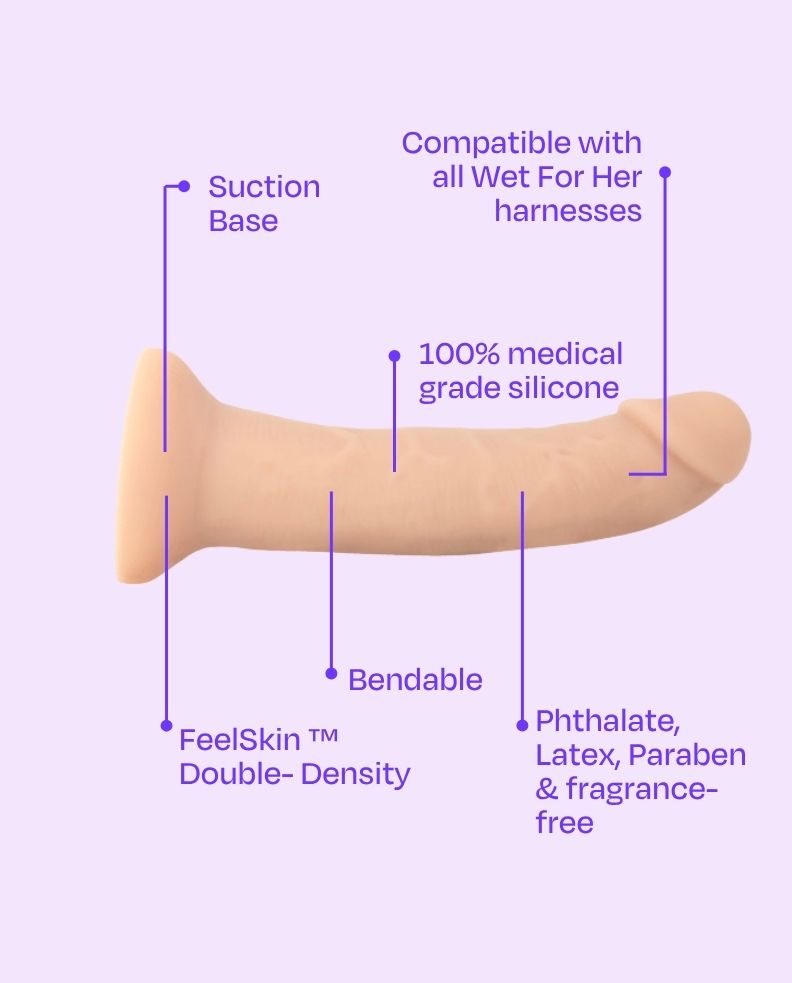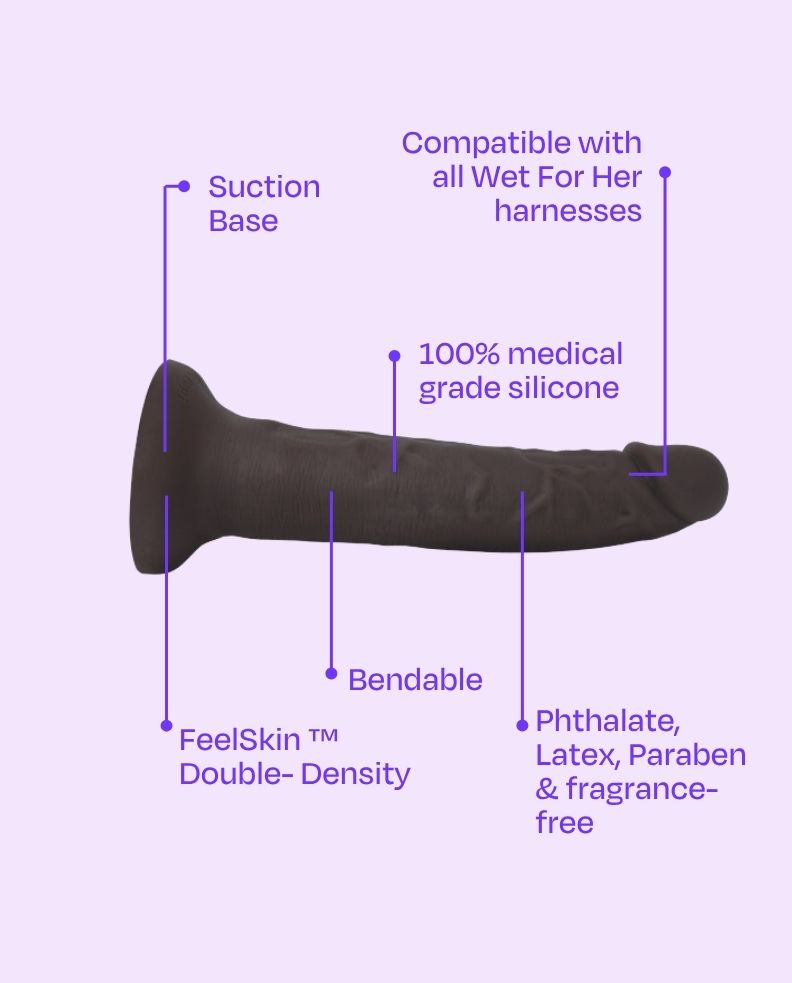 Flying solo? Its strong suction cup sticks to any smooth surface for hands-free, ride-it-how-you-like fun. Craving connection? Strap it into your favorite Wet For Her harness for next-level partner play. However you use it, Big Papi is built to fill you up—and then some.