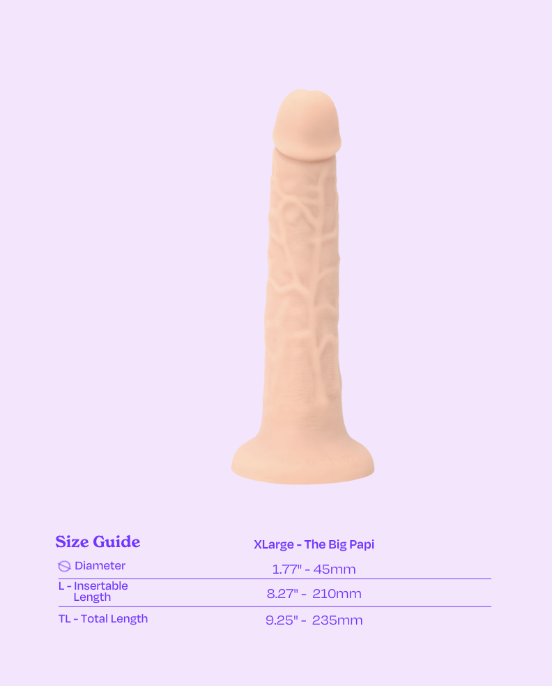 Big Papi is all about size, realism, and serious satisfaction. Crafted in lifelike skin tones with detailed veins and a sculpted head, this XL dildo delivers a full-bodied experience that looks and feels incredibly real. Perfect for strap-on play, it fits snugly into your favorite Wet For Her harness, staying secure and steady no matter how wild things get.