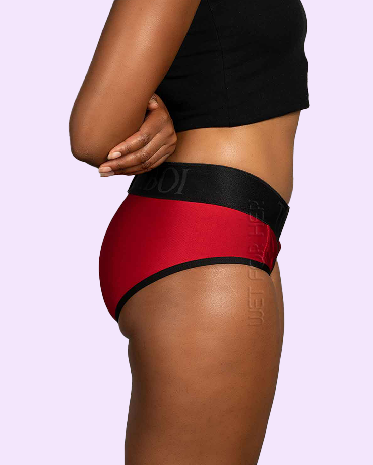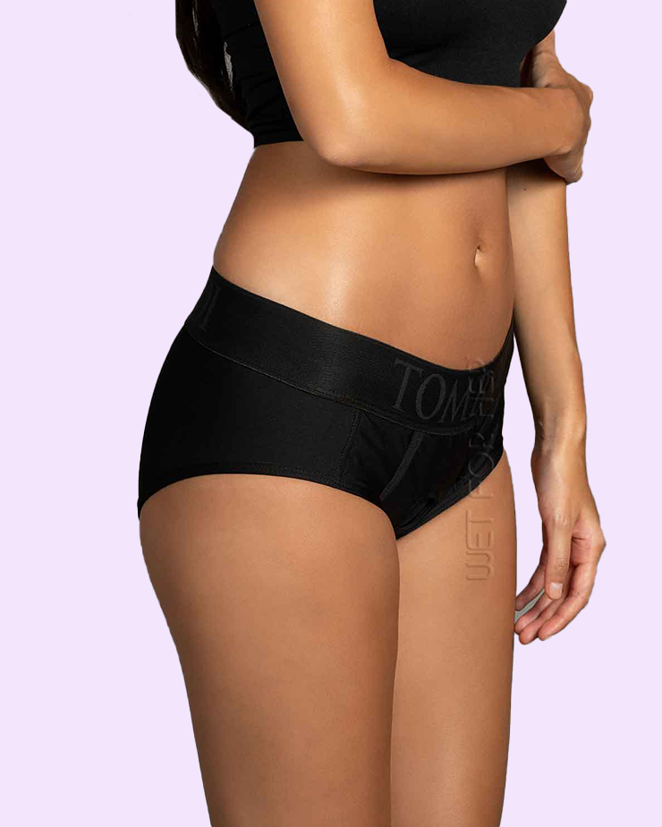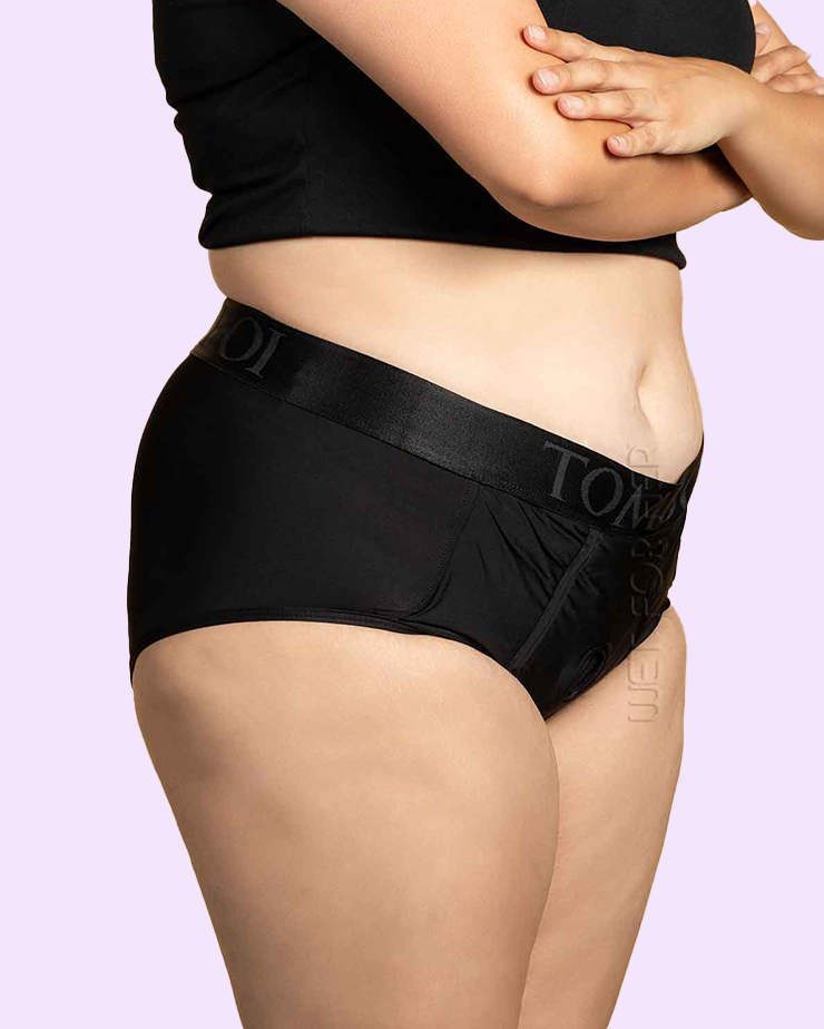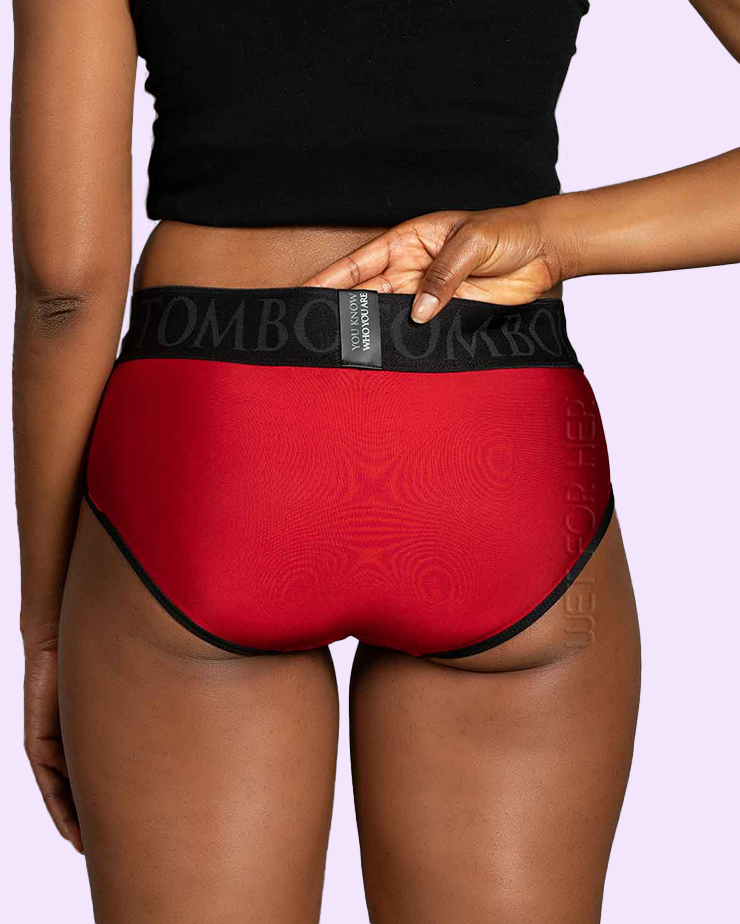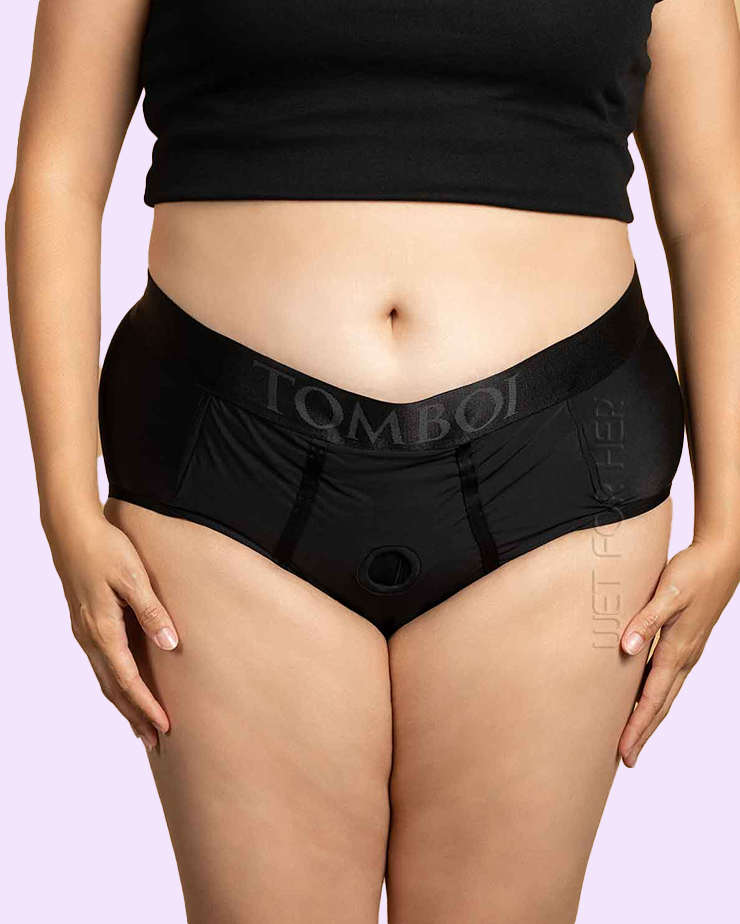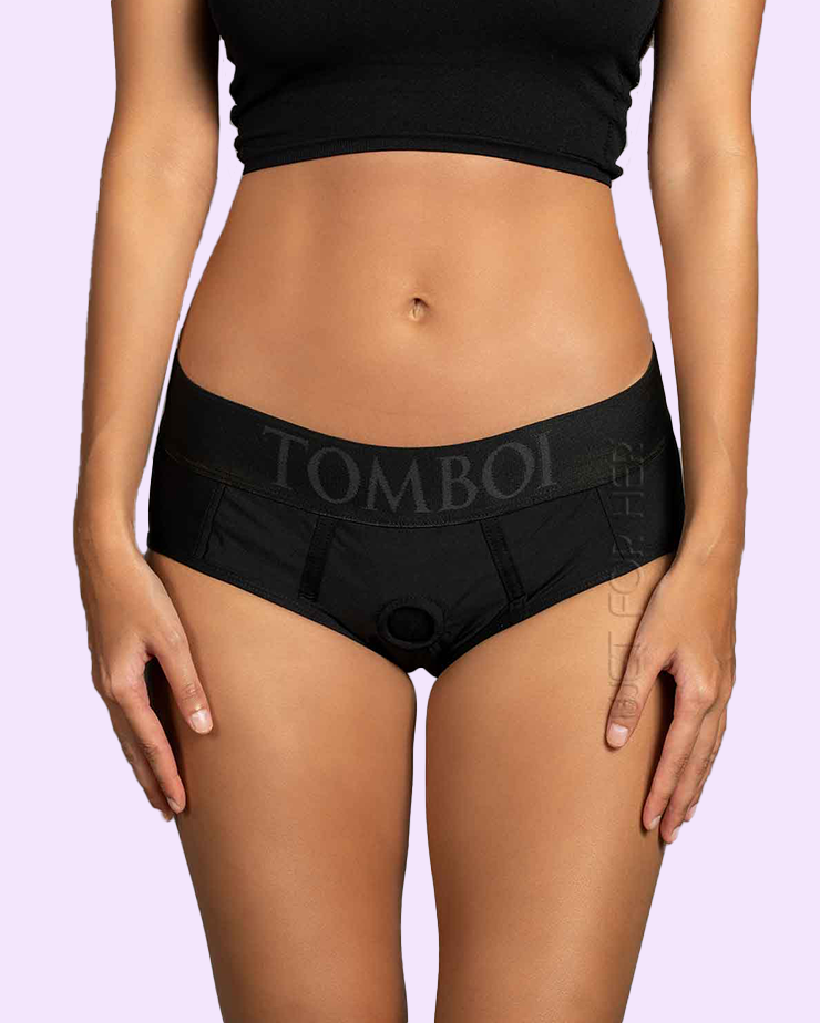 Do you love strap-on sex but struggle to find the right harness underwear? If yes, then the Tomboi brief harness is about to make all your fantasies come true. Made by lesbians for lesbians and made in the US. One of our best-selling underwear for strap on garments, the Tomboi brief strap-on o’ring harness is perfect for queer, lesbian, bisexual, trans, and gender non-conforming couples who want to indulge in a little (or a lot) of pack-and-play. Whether you are new to strap-on sex or you have been enjoying hands-free queer penetration for some time, the Tomboi boxer brief harness promises to transform your sex life.